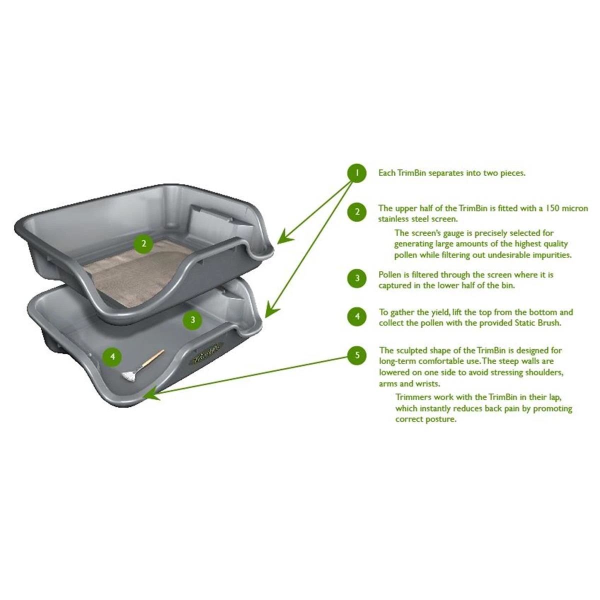 Im Design ergonomisch und robust gestaltet, erlaubt der TrimBin ein stressfreies Schneiden von Pflanzenteilen und Ernten deiner Pflanzen. Zusätzlich werden Harze vom Pflanzenmaterial getrennt und fallen durch das Sieb in die untere Schale des TrimBin. Die Belohnung zur Ernte liegt separat in der untersten Schale. Kein Verlust von Pflanzenteilen. Die Schale ist leicht zu reinigen und leicht im Transport. Natürlich kann die Schale auch zum Trennen von Pflanzenmaterialen verwendet werden. Dazu einfach getrocknetes, zerkleinertes Material in die obere Schale geben und durch bewegen abtrennen (diese Methode funktioniert optimal mit dem TrimBin Filter).