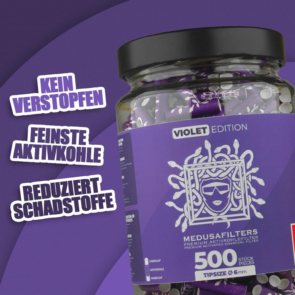 Medusafilters Aktivkohlefilter 6mm VIOLET (500er Glas)